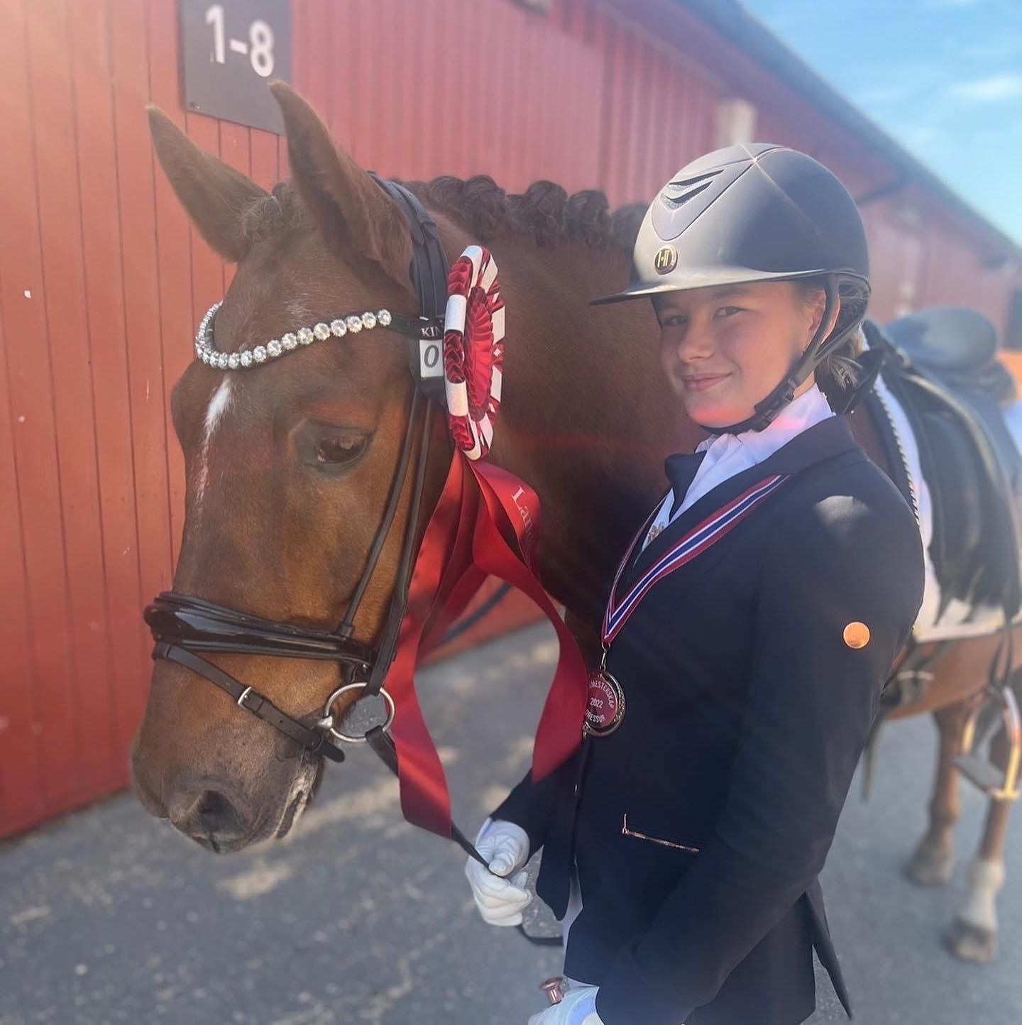 Foregående bilde Neste bilde 4AC718A0-F7CA-4F08-AC98-9A648F46F2E0 Frida og One 2. plass i landsmesterskap dressur for ponni,2022 Lik Laster inn...